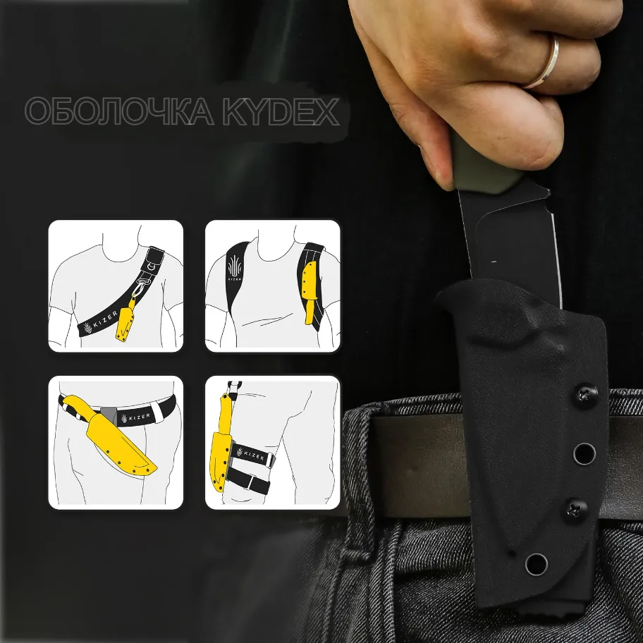 -Чехол: черный кайдекс обеспечивает безопасную переноску и быстрый доступ к ножу.