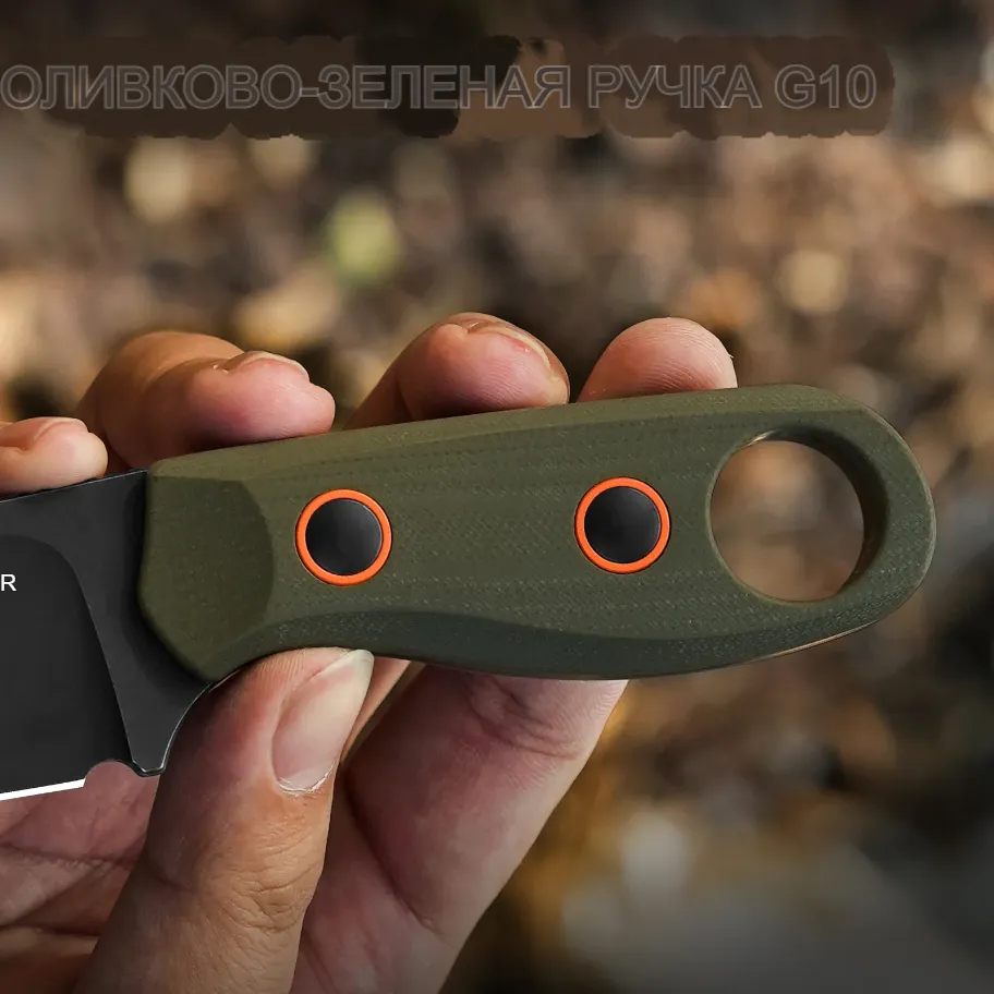 -Сталь Nitro-V с черной вороненой отделкой: повышенная прочность, хорошая износостойкость и устойчивость к коррозии; поверхность скрывает царапины и выглядит стильно в полевых условиях.-Рукоять: оливково-зеленый G10 с удобными выступами для надежного хвата и контроля.