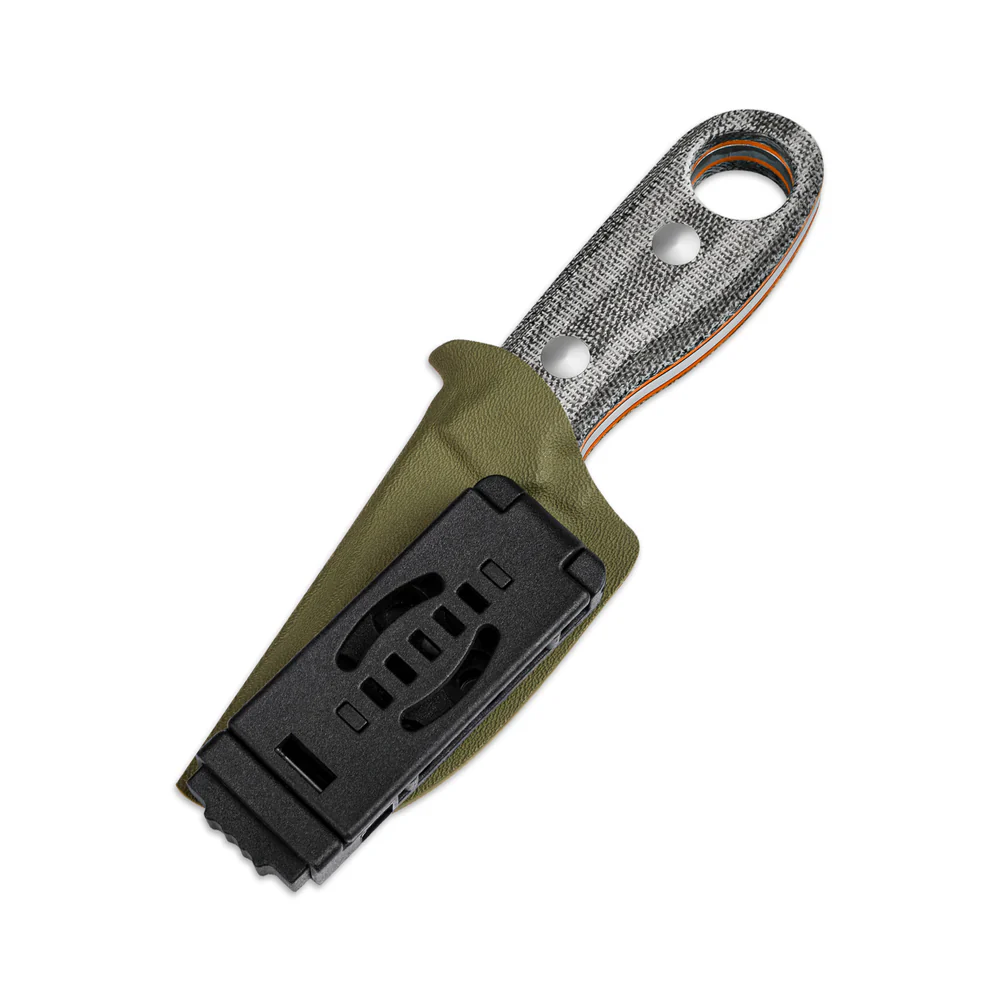 -Сталь Nitro-V: прочность и износостойкость с дополнительной защитой поверхности благодаря черной вороненой и пескоструйной обработке.-Рукоять: сочетание Micarta и оранжевого G10 обеспечивает прочность, теплоемкость и эргономическую форму для уверенного хвата.
