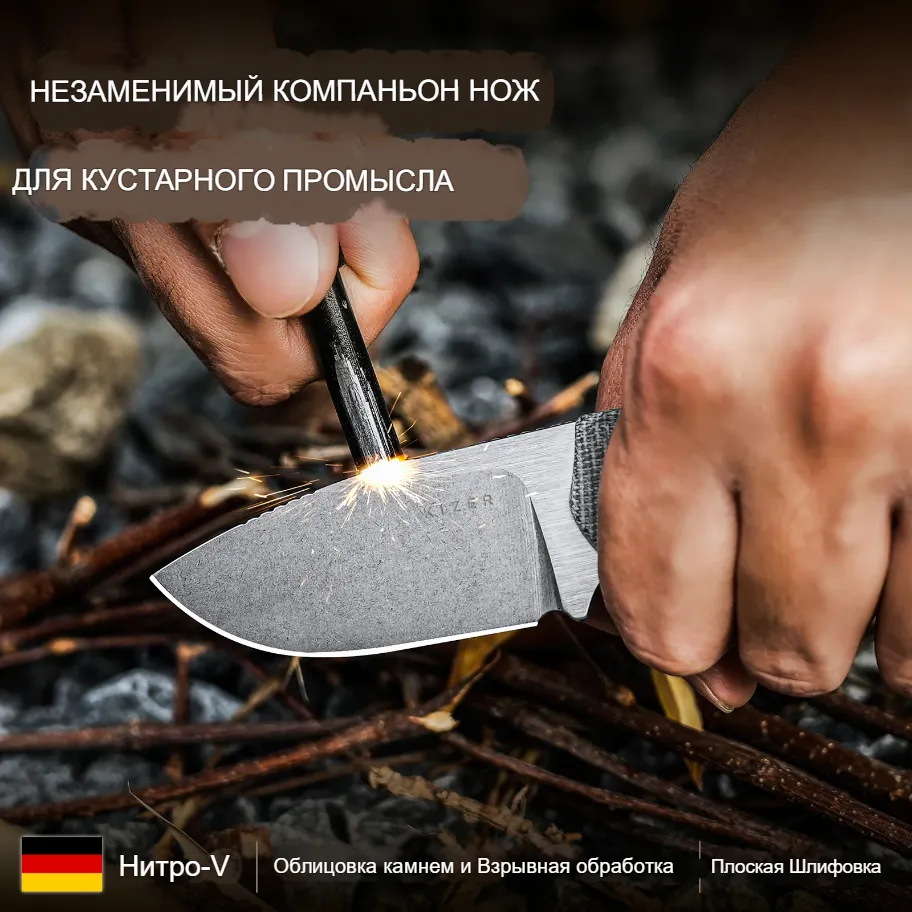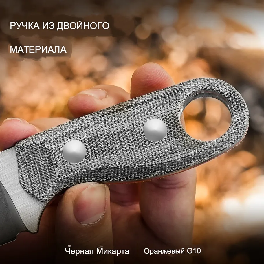 -Высокая прочность и долговечность благодаря Nitro-V, подходящей твердости и стойкости к износу.-Комбинация Micarta и оранжевого G10 обеспечивает долговечность и комфортный, надежный хват в любых условиях.