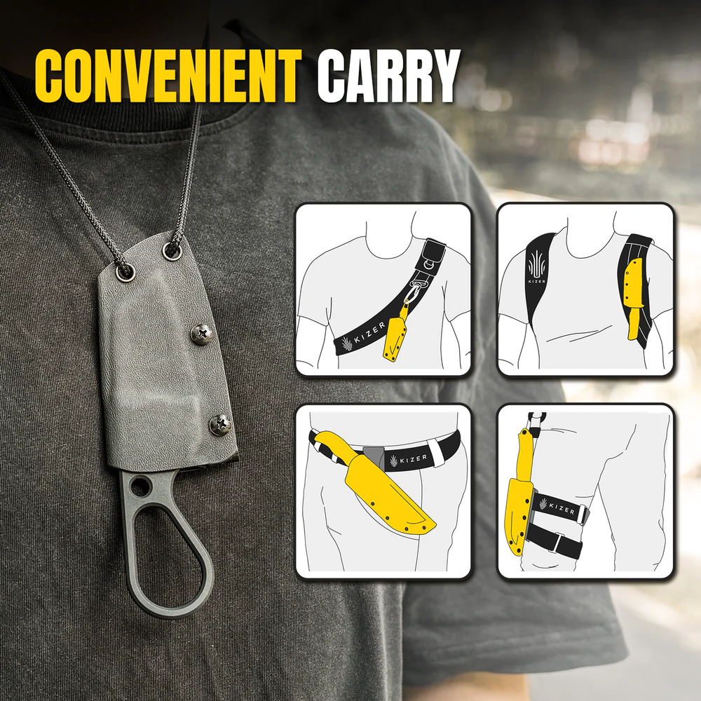 -Гибкость ношения: ножны позволяют носить нож на шее, в кармане, на ремне или на лямке рюкзака.