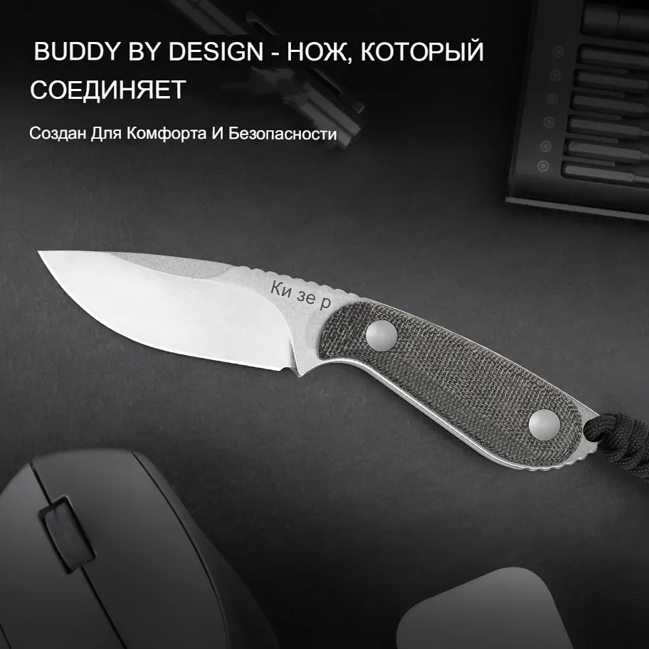 Нож BUDDY сочетает практичность и стиль в долговечном фиксированном клинке. Лезвие из нержавеющей стали 14C28N с побелкой камнем обеспечивает достойную остроту и устойчивость к коррозии. Геометрия лезвия Drop Point делает нож универсальным инструментом для повседневных задач, походов и активного отдыха. Рукоять из микарты обеспечивает уверенный хват и комфорт в эксплуатации — а общая длина в 6,24 дюйма (158,5 мм) и умеренный вес делают этот нож удобным для ношения каждый день.Почему выбирают BUDDY