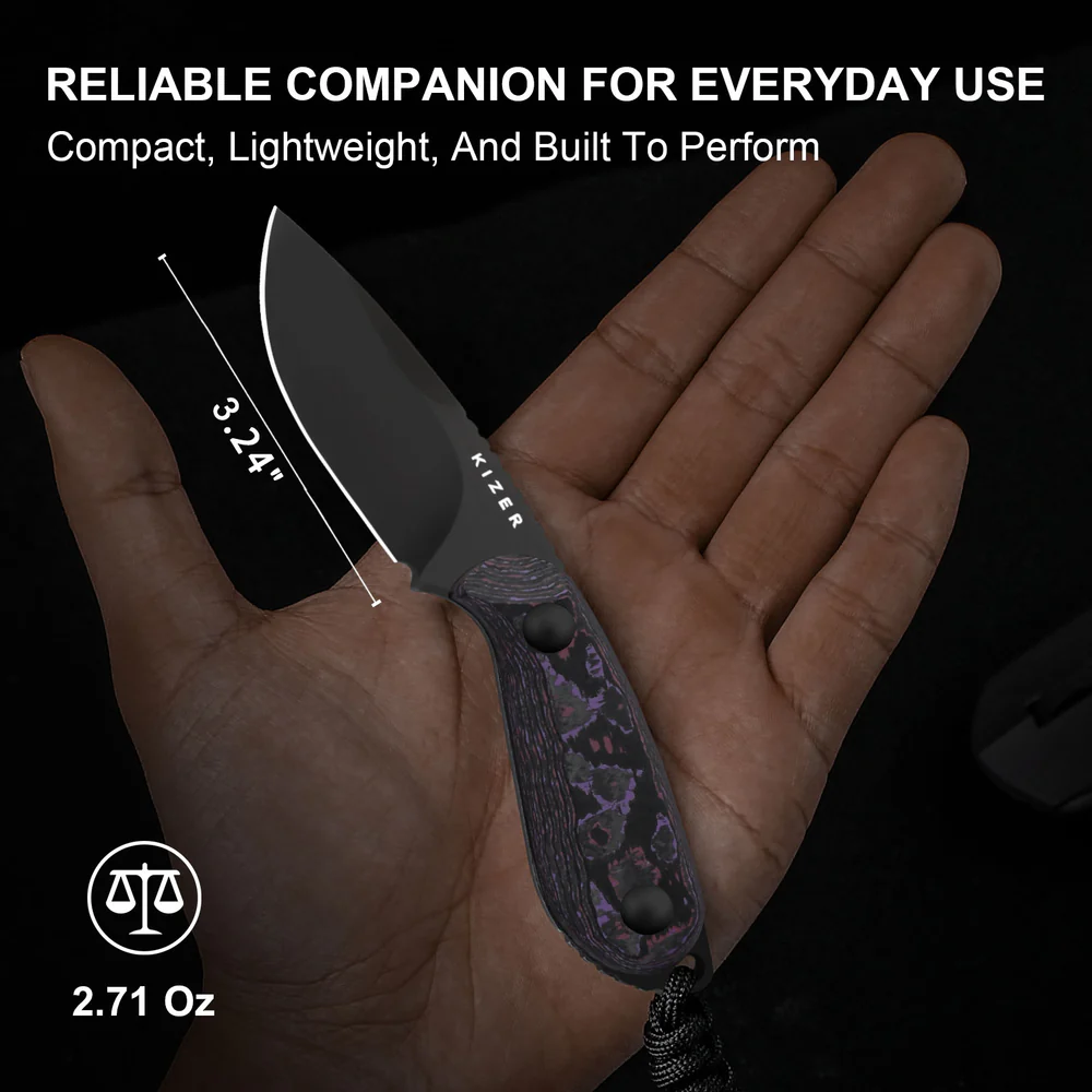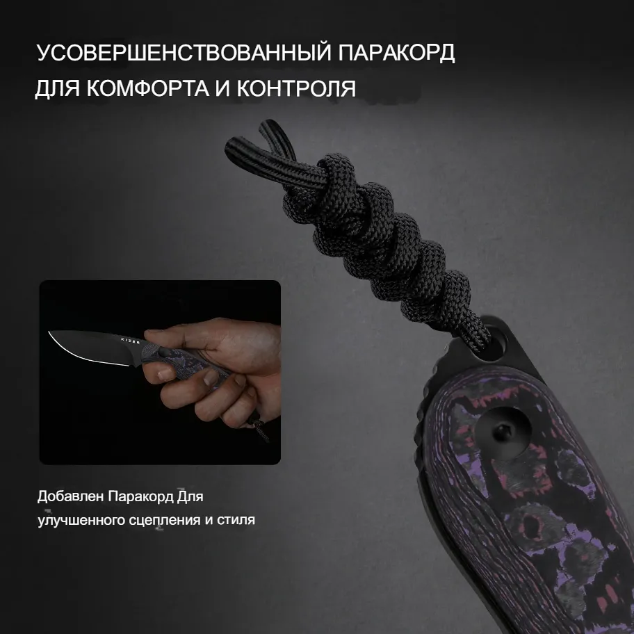 -Премиальные материалы: 4V для надежной прочности кромки, DLC‑покрытие для стойкости к бликам и износу, Fat Carbon Purple Haze для эксклюзивного внешнего вида и прочного хвата.-Универсальная геометрия: Drop Point обеспечивает широкий диапазон задач — от бытовых до полевых.