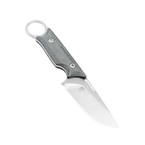 -Вдохновение: кабокс был создан как современная версия охотничьего ножа для снятия шкур и разделки дичи — с усиленным кромочным острием и более длинным широким лезвием.-Материал и отделка: лезвие выполнено из стали D2 и окрашено в стиль «под старину»; рукоятка — черная матовая микарта с рельефной поверхностью для надежного хвата.