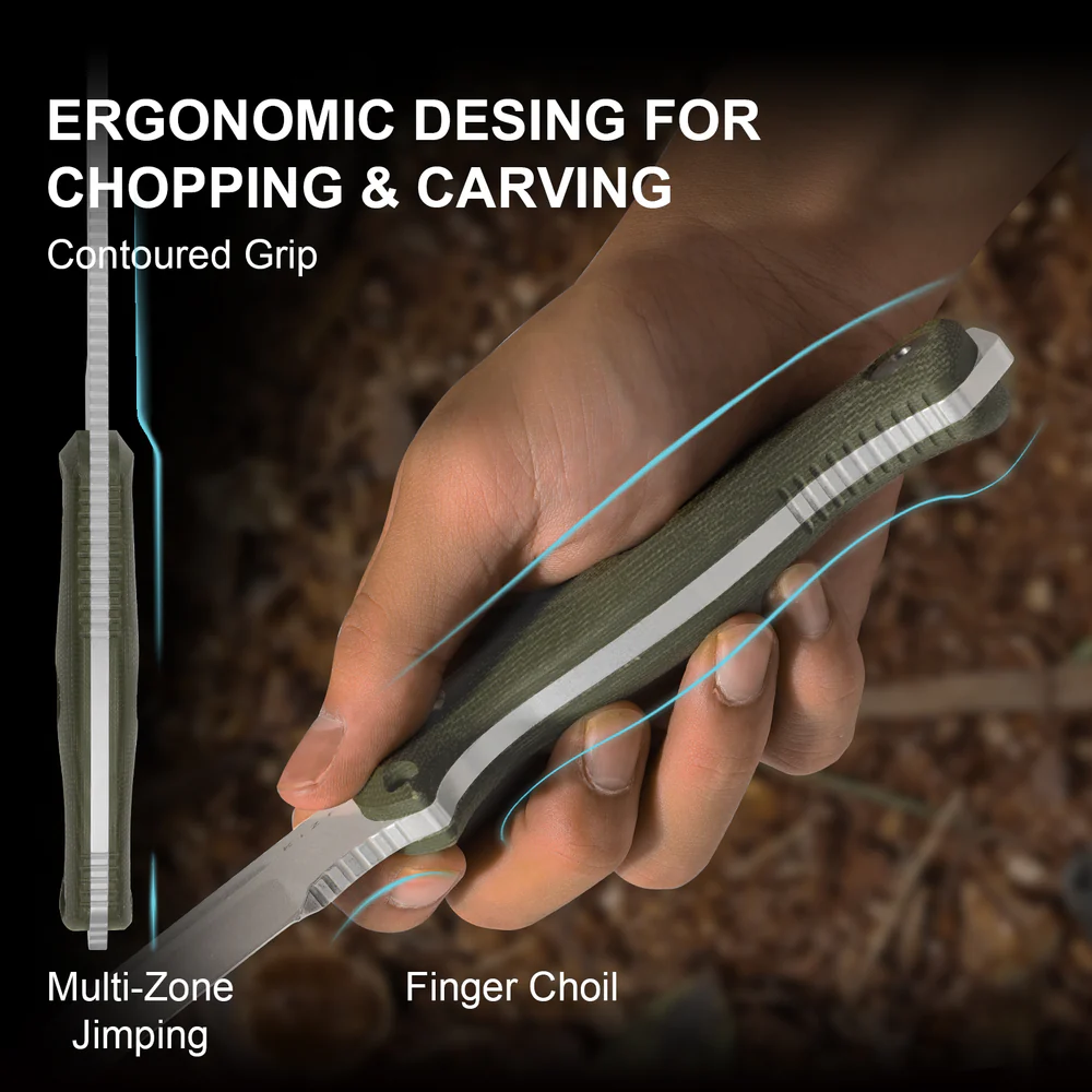 -Рез и раскалывание в равной мере: клинок разработан для мощной и точной работы по дереву и твердым материалам, обеспечивая эффективное выполнение задач бушкрафта.