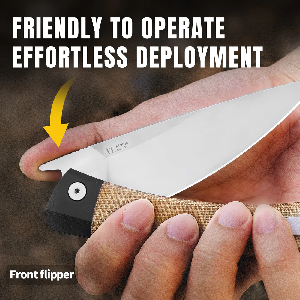Момо сочетает в себе стиль и практичность. Этот нож идеально подходит для повседневных задач и готовности к походному приготовлению на открытом воздухе. Дизайн в духе киридши, удобная двойная рукоять из черного G10 и коричневой микарты, а также надёжная система раскрытия Front Flipper и врезной замок делают его основательным компаньоном в городских условиях и на природе.Особенности