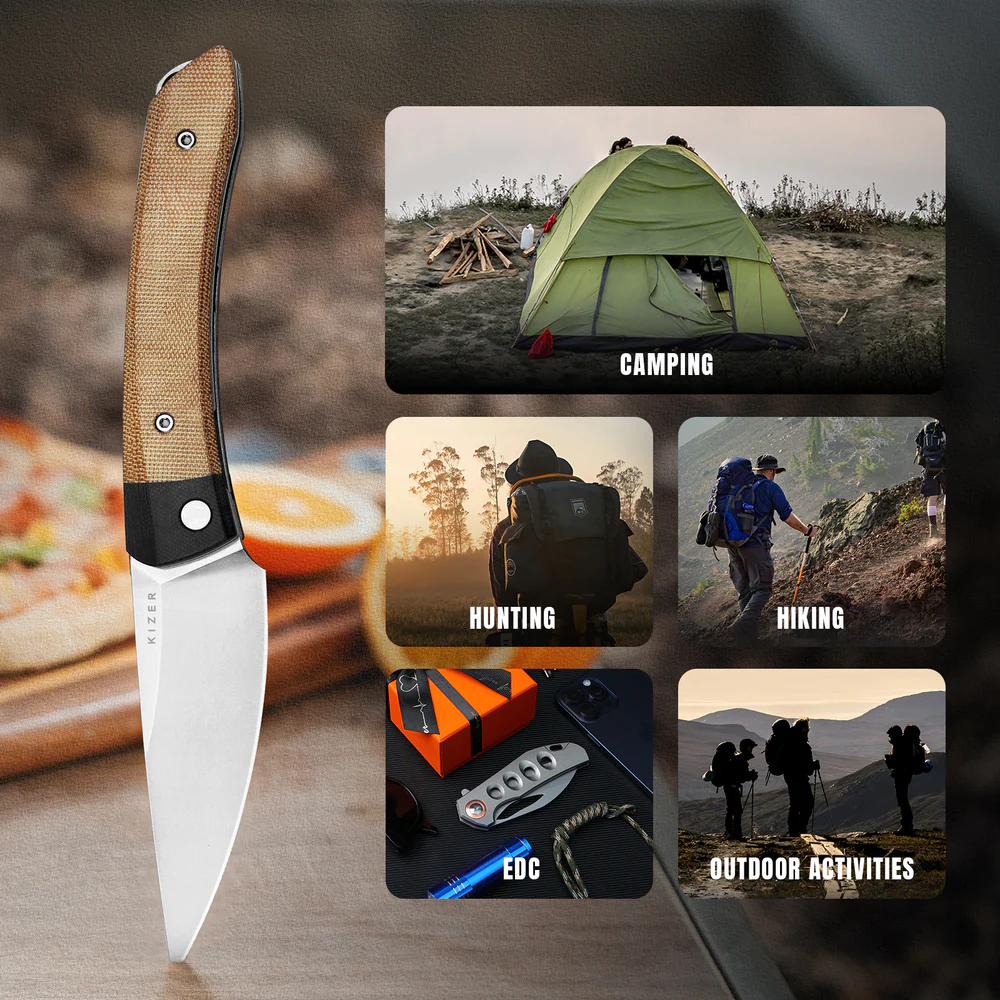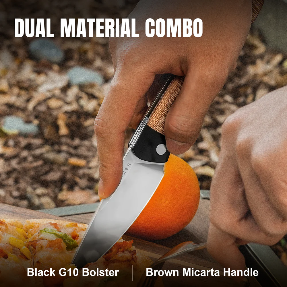 -Дизайн в стиле киридаши — удобство и эффективность для кэмпинга и активного отдыха.-Две материалы рукояти: черный G10 и коричневая микарта — сочетание прочности, сцепления и стильного контраста.