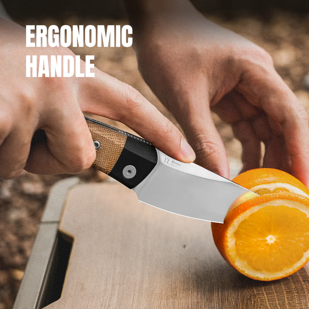 -Лезвие: Nitro-V сталь с сатинированной отделкой — прочность и устойчивость к износу.-Рукоять: черный G10 + коричневая микарта — сочетание сцепления, долговечности и визуального контраста.