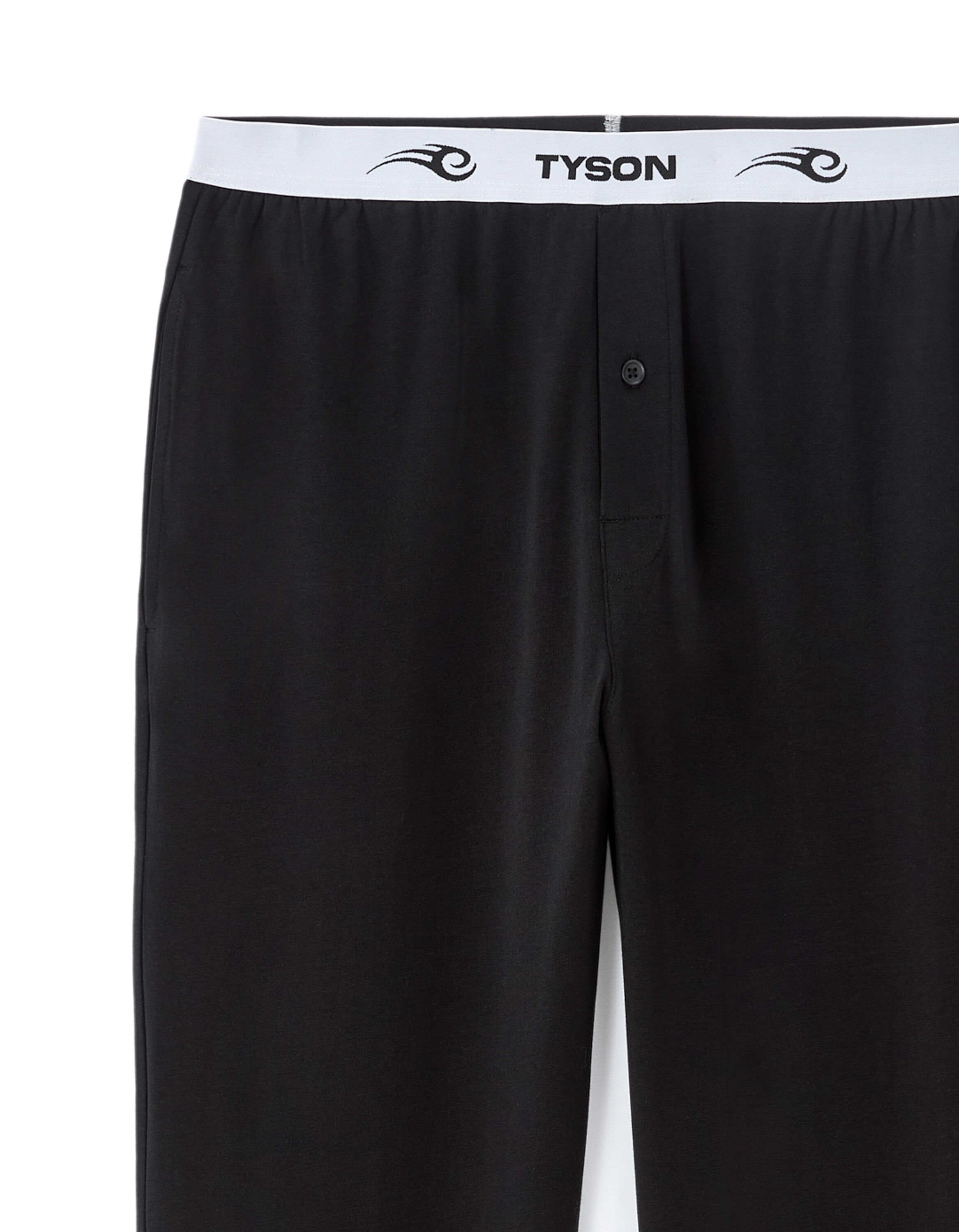 Новая коллекция Tyson вдохновлена символом силы и стиля. Эти черные тренировочные штаны — идеальный выбор для тех, кто овладел искусством стильного отдыха. Элегантный жаккардовый эластичный пояс Tyson, застежка на пуговицы и две боковые карманы создают неповторимый образ, сохраняющий удобство на протяжении всего вечера и ночи. Сочетайте с футболкой или пижамной толстовкой.Характеристики