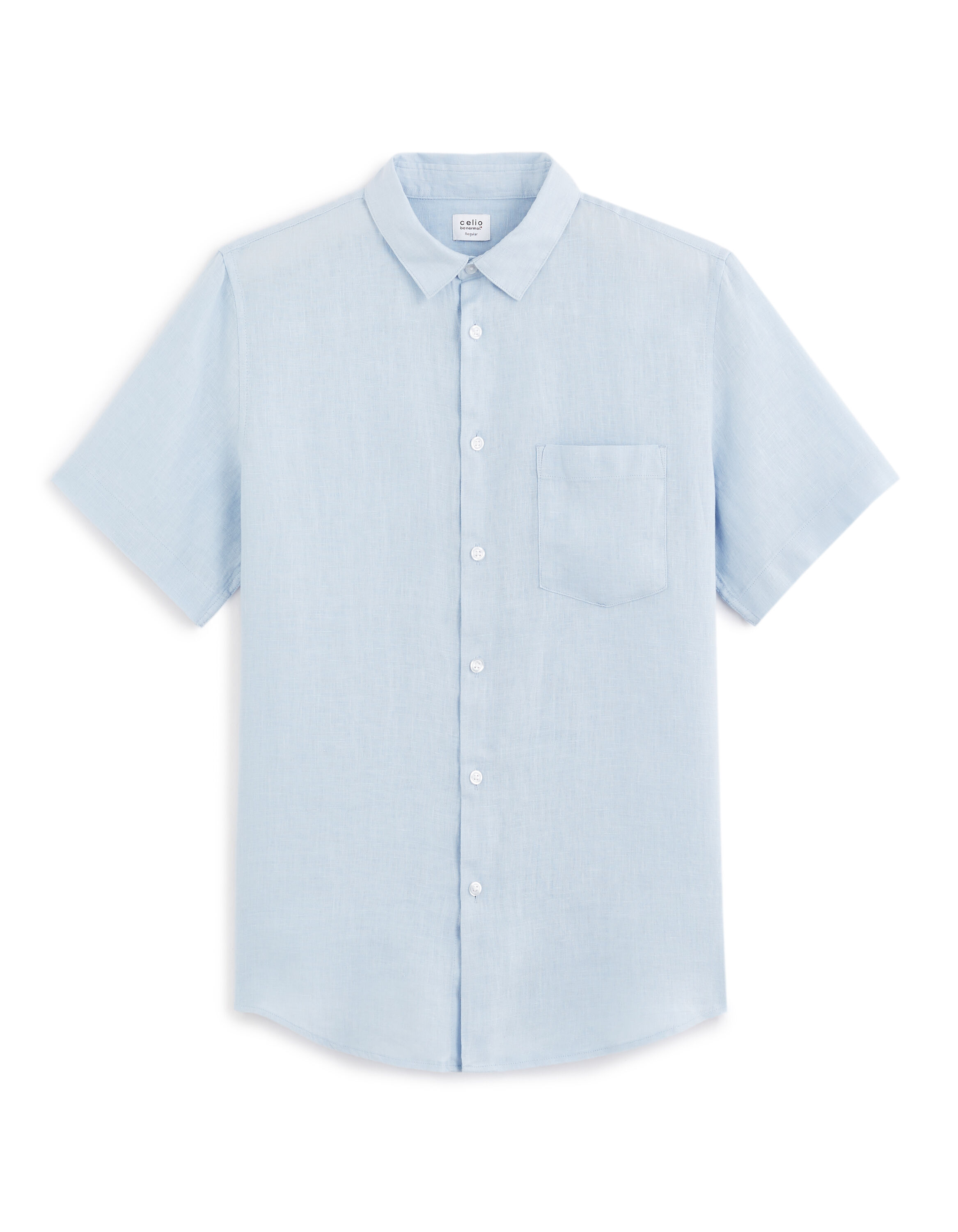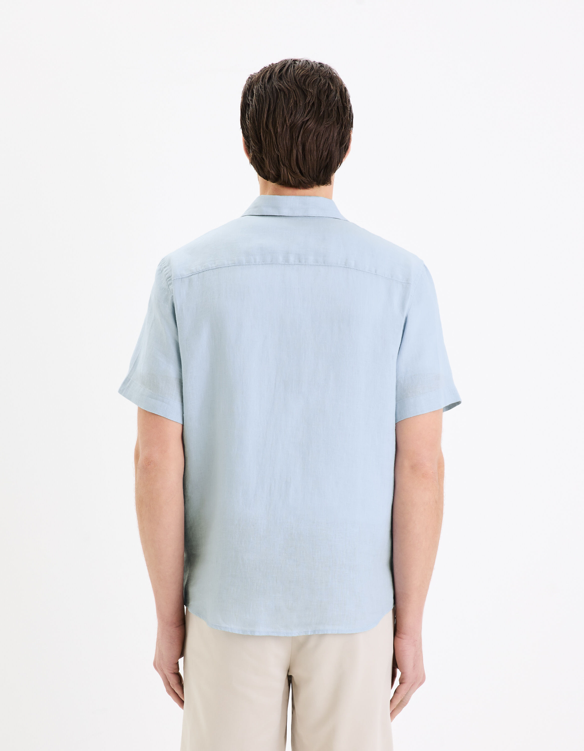 Лёгкая рубашка из 100% льна в светло-голубом оттенке — идеальный выбор для жаркой погоды. Обычный крой и французский воротник создают аккуратный, неформальный образ, а короткие рукава добавляют свободы движений. Натуральный лен обладает терморегулирующим эффектом: материал пропускает воздух, быстро впитывает влагу и быстро сохнет, поэтому вам будет прохладно и комфортно в самые тёплые дни.Особенности