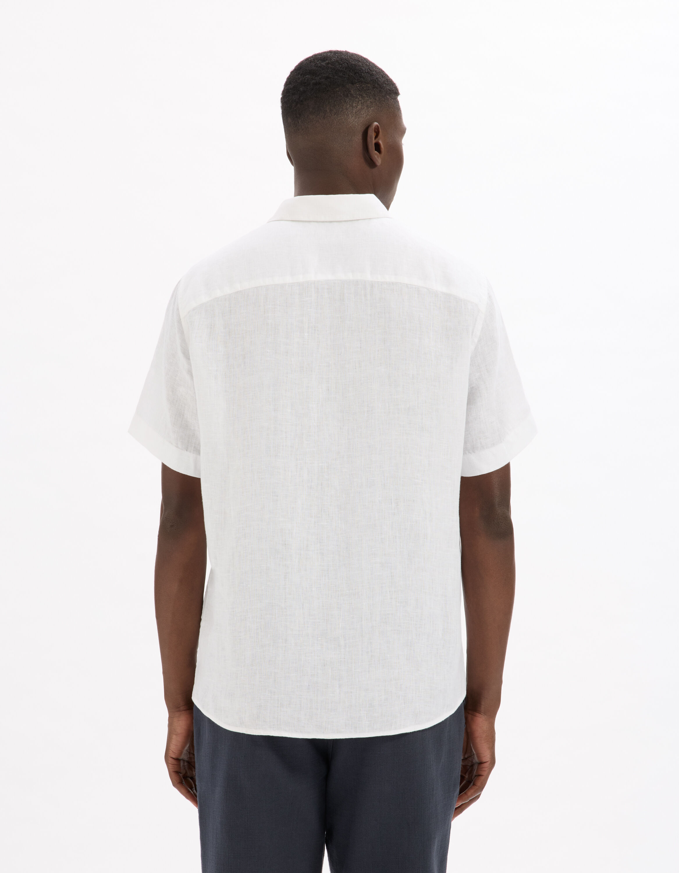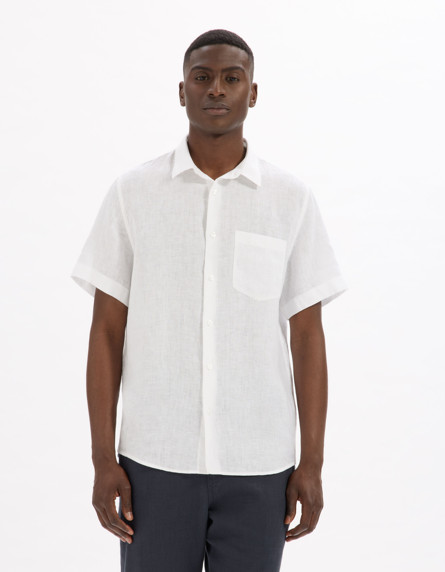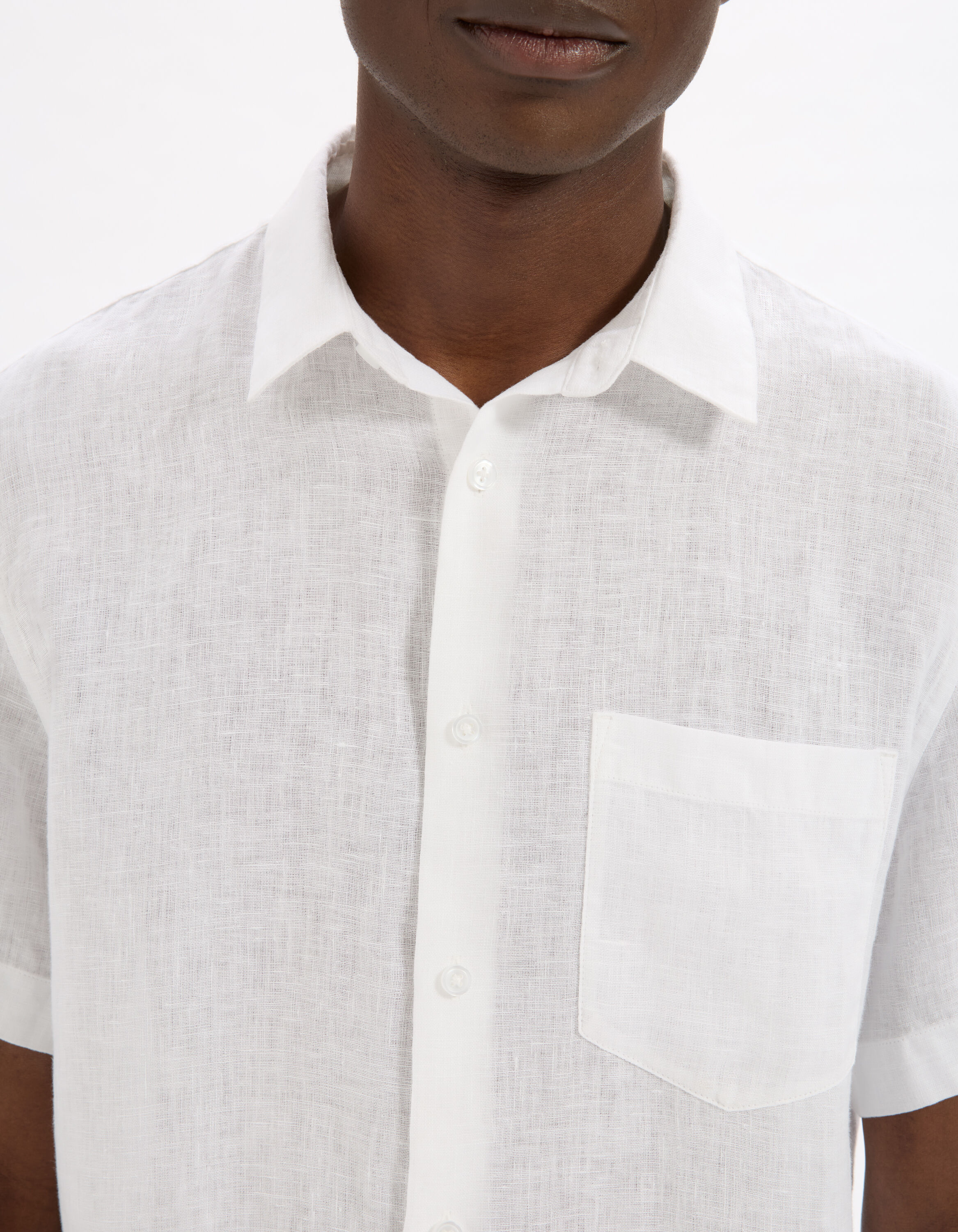Легкая рубашка обычного кроя с короткими рукавами и французским воротником. Выполнена из 100% льна с терморегулирующими свойствами, имеет накладной карман — сочетание комфорта и сдержанной элегантности для жаркого лета.