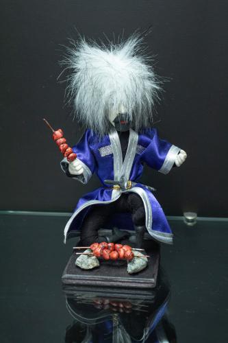 Перед нами очередной сувенир " Джигит и шашлык", который символизирует одну из главных традиций Дагестана - умение готовить шашлык. Уверяю вас, ни одного кавказца не назовут кавказцем, если он не умеет готовить это изысканное блюдо.Этот процесс работы не из лёгких, так как весь процесс от замачивание глины до росписи готовых изделий проходит вручную. Обжиг производится в гончарных печах «чара» простейшей конструкции в два яруса. Внизу – топка, над ней – камера, куда закладываются изделия. Топливом служит кизяк. Нередко языки пламени горящего кизяка наносят на кувшины свой рисунок. Они становятся более живыми, как мне кажется, одушевленными. Такие мне больше нравятся, нежели те, которые выходят из печи ровного обжига.